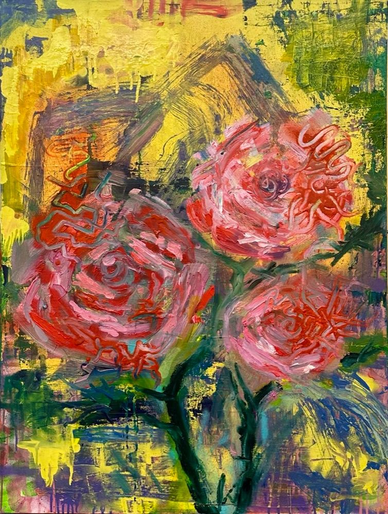 I work across painting, drawing, mixed media, and digitally, often moving between fast, instinctive mark-making and slower, more deliberate construction. This back-and-forth — between the raw and the refined — sustains the work. When a piece becomes too controlled or fixed, I return to play through erasure, layering, or disruption to keep the surface alive.
